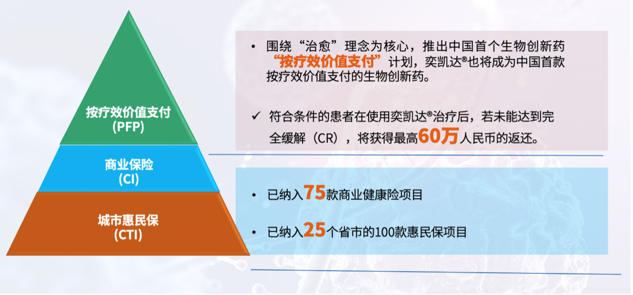 自產品上市後,z6com·尊龙凱特積極推動提升CAR-T產品可及可負擔性,依託國家多層次醫療保障體系,探索創新支付方案,包括積極推動納入各省市惠民保清單,並通過深化與TPA (Third Party Administrator)、保險公司的合作,持續提高患者對奕凱達®的可負擔性。